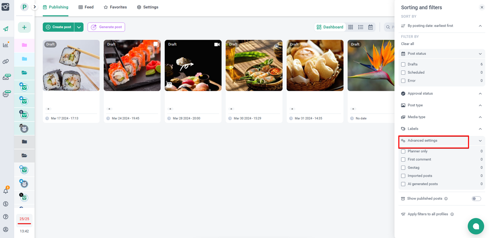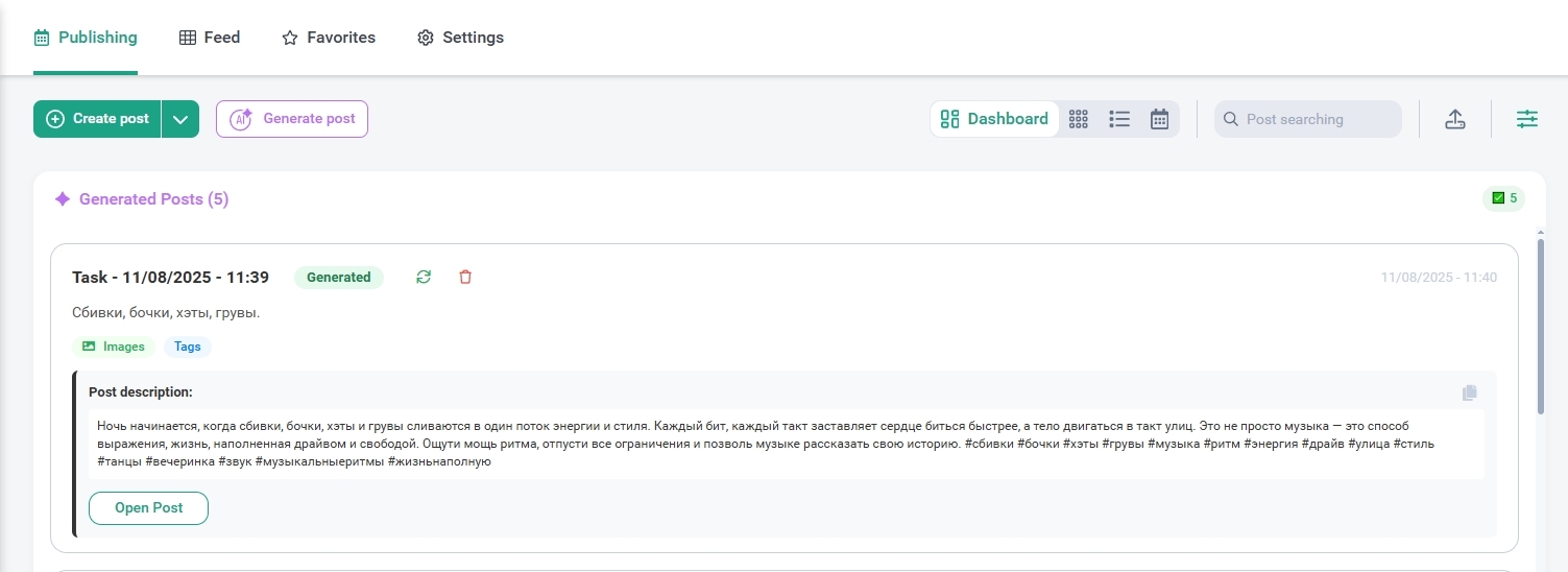 - Generation of posts: